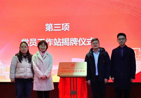 在全体与会人员的见证下,与会领导和老师共同为“数励先锋”党员工作站揭牌。