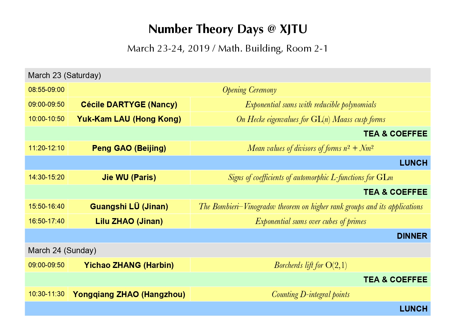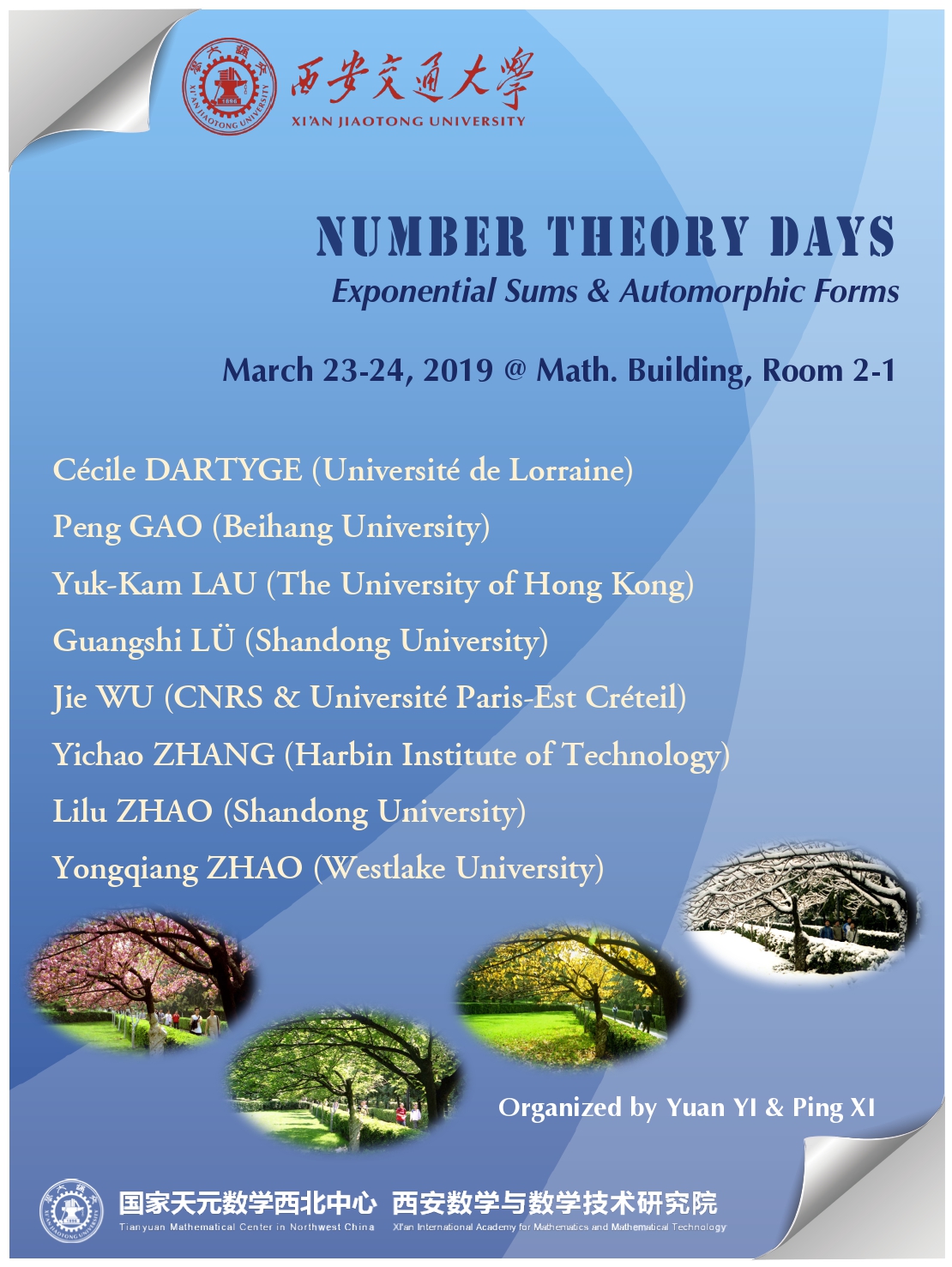 【数论系列活动19-02】Number Theory Days @ XJTU, 2019.03.23-24