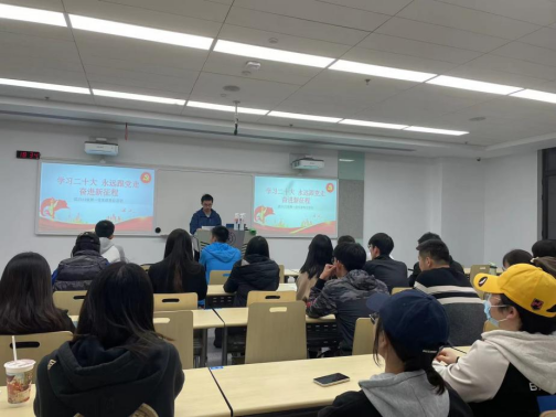 在学习讨论环节,各党小组围绕《中国共产党章程》及习近平总书记在中国共产党第二十次全国代表大会上的报告展开深入交流,每个党小组还专门安排一名同学分享学习心得。